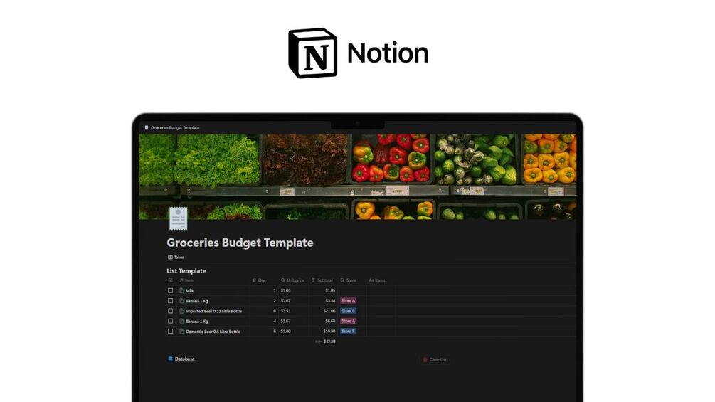 Input the quantity for each item, and watch as our template automatically calculates the subtotal. This calculation uses the price from the item’s database entry, instantly showing you the cost of each part of your grocery list.